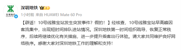 深圳地铁10号线雅宝站发生突发事件?伪造的!